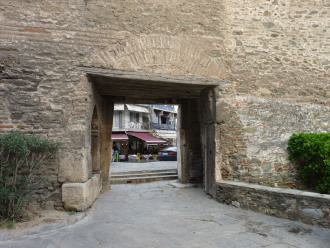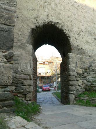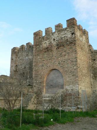 Die Kaiserin Anna Palaiologina (gebürtige Johanna von Savoyen) ist von 1341 bis 1347 Regentin für ihren minderjährigen Sohn Johannes V. Ab dem Jahr 1351 lebt Anna Palaiologina in Thessaloniki. Sie beauftragt die Verstärkung der Stadtmauern und auf ihr Geheiß hin werden zwei weitere Tore an der Ostmauer zur Akropolis geöffnet. Anna Palaiologina stirbt 1365 in Thessaloniki als Klosterschwester Anastasia.