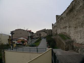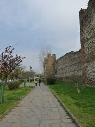 Zwischen dem "Weißen Turm" und der Straße "Agiou Dimitriou" ist die Stadtmauer komplett entfernt. Ab der "Agiou Dimitriou" kann man an der Stadtmauer entlang laufen bis hoch zur Akropolis. Dies ist im Hochsommer aber nicht zu empfehlen, es fährt auch ein städtischer Bus an der Stadtmauer entlang. An der Akropolis entlang besteht die Möglichkeit die gesamte Stadtmauer wieder runter zu laufen bis an die "Platia Dimokratias" (Vardaris). Auf dem Weg entlang der Stadtmauern kommt man im nördlichen Bereich in weniger schönen Ecken von Thessaloniki vorbei. Die Gegend als Slum zu bezeichnen ist etwas übertrieben, jedoch fehlt nicht mehr viel. Auf der südwestlichen Seite der Stadtmauer an der "Agiou Dimitriou" normalisiert sich das Ganze wieder und man gelangt an die Reste des "Litaia Tors". Westlich des "Vardaris" sind bei den neuen Gerichtgebäuden auf der Meerseite, die Reste der Seemauer zu sehen.