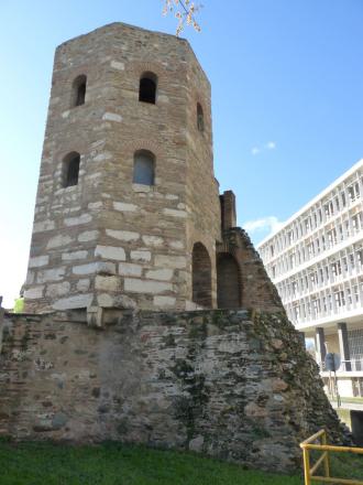 Im Lauf der byzantinischen Epoche werden die Stadtmauern von Thessaloniki immer weiter ausgebaut. Neben den byzantinischen Kaisern Zenon (474 bis 491) und dessen Nachfolger Anastasios I. (491 bis 518) baut auch Jahre später Leo IV. (Leon Sophos bzw. Leo der Philosoph 886 bis 912). Der letzte Ausbau der Stadt ist dringend nötig, da die Sarazenen 904 in Thessaloniki einfallen. Aufgrund der Eroberung von Thessaloniki durch die Sarazenen baut der Nachfolger Leos IV., Romanos, die Stadtmauern von Thessaloniki noch höher.