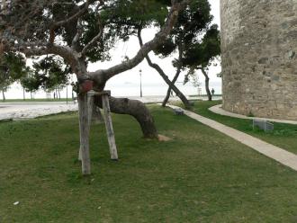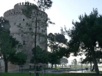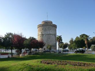 Das Wahrzeichen der Stadt Thessaloniki ist der Weiße Turm. Direkt am Meer gelegen sieht man ihn von jedem Punkt der Promenade. Selbst aus der Luft ist der Weiße Turm bei einem Anflug aus Nordwest und dem Abflug nach Nordwest gut zu sehen.