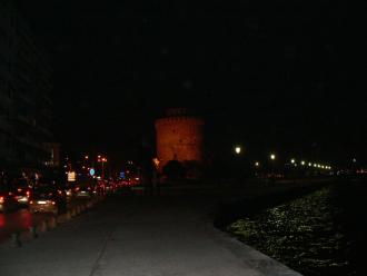 Das Wahrzeichen der Stadt Thessaloniki ist der Weiße Turm. Direkt am Meer gelegen sieht man ihn von jedem Punkt der Promenade. Selbst aus der Luft ist der Weiße Turm bei einem Anflug aus Nordwest und dem Abflug nach Nordwest gut zu sehen.