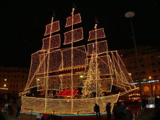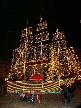 Um die Weihnachtszeit findet auf dem Aristotelous Platz der traditionelle Weihnachtsmarkt statt. Anstatt eines großen Weihnachtsbaums wird ein aus Lichtern bestehendes Schiff ausgestellt. Einen besonderen Reiz hat dies im Sonnenuntergang Richtung Meer schauend.