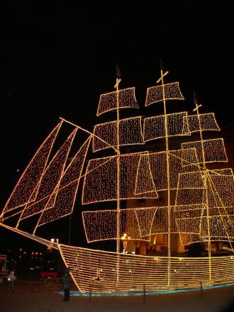 Um die Weihnachtszeit findet auf dem Aristotelous Platz der traditionelle Weihnachtsmarkt statt. Anstatt eines großen Weihnachtsbaums wird ein aus Lichtern bestehendes Schiff ausgestellt. Einen besonderen Reiz hat dies im Sonnenuntergang Richtung Meer schauend.