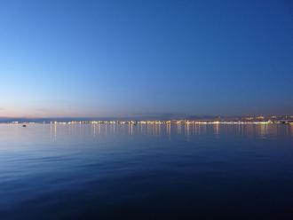 Besonders schön ist die Promenade bei Sonnenuntergang und bei Nacht. Durch verschiedenfarbige Lichteffekte wird die ganze Promenade schön ausgeleuchtet. Selbst die Pumpstation des Wasserwerks erscheint so in einem schönen Glanz. In den letzten Jahren hat sich die Promenade zu einem beliebten Treffpunkt bei Sonnenuntergang entwickelt. In der "Biegung" unweit des Weißen Turmes ist eine Plattform errichtet worden, die von den Einheimischen und einigen wenigen Touristen als Aussichtspunkt genutzt wird. Hier sieht man besonders schön, wie die Sonne hinter dem Olymp versinkt.