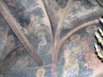 Wie in den meisten Kirchen von Thessaloniki sind die byzantinischen Fresken durch die Osmanen überspachtelt worden. Die Fresken und Mosaike der Agion Apostolon aus der Zeit der byzantinischen Herrscherfamilie der Paleologen sind erst 1940 bei einer Restaurierung wiederentdeckt worden.