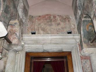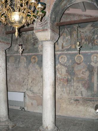 Die Kapelle des Heiligen Efthimios ist zwischen 1261 und 1282 an die Kirche des Heiligen Dimitrios angebaut worden. Gemäß der Signatur auf den Fresken in der Kapelle des Heiligen Efthimios sind diese 1303 von dem Rittmeister Michail und seiner Frau Maria gemalt worden. Die Fresken stellen den Höhepunkt der Thessaloniker Ikonenschule dar. Die Thessaloniker Ikonenschule ist zum Ende des Byzantinischen Reiches die Spitze der Kunstfertigkeit und führend auf dem gesamten Balkan.