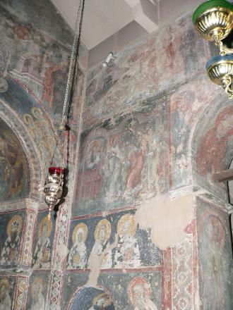 Die Kapelle des Heiligen Efthimios ist zwischen 1261 und 1282 an die Kirche des Heiligen Dimitrios angebaut worden. Gemäß der Signatur auf den Fresken in der Kapelle des Heiligen Efthimios sind diese 1303 von dem Rittmeister Michail und seiner Frau Maria gemalt worden. Die Fresken stellen den Höhepunkt der Thessaloniker Ikonenschule dar. Die Thessaloniker Ikonenschule ist zum Ende des Byzantinischen Reiches die Spitze der Kunstfertigkeit und führend auf dem gesamten Balkan.