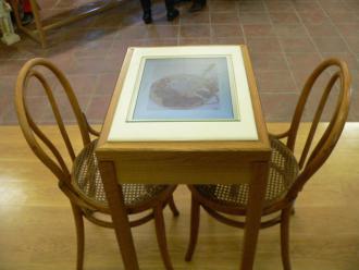 Auf der siebten Etage ist ein Café untergebracht mit den wohl ungewöhnlichsten Tischen Griechenlands. In den Tischen sind Monitore eingelassen und während man seinen Kaffee trinkt, bekommt man über Monitor einen Kochkurs für griechische Küche.